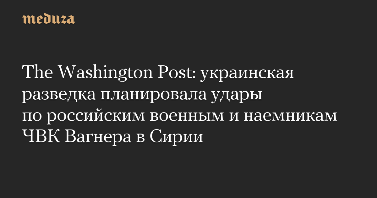 The Washington Post: украинская разведка планировала удары по российским военным и наемникам ЧВК Вагнера в Сирии