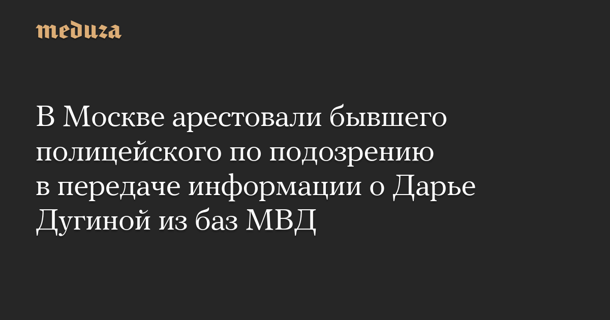 В Москве арестовали бывшего полицейского по подозрению в передаче информации о Дарье Дугиной из баз МВД