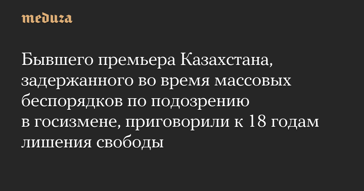 Бывшего премьера Казахстана, задержанного во время массовых беспорядков по подозрению в госизмене, приговорили к 18 годам лишения свободы