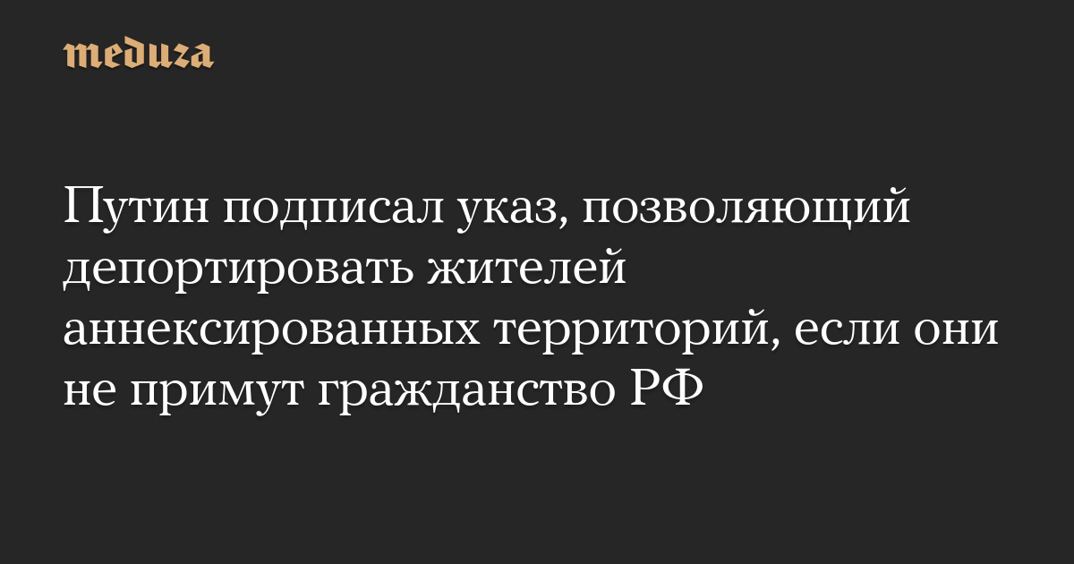 Путин подписал указ, позволяющий депортировать жителей аннексированных территорий, если они не примут гражданство РФ