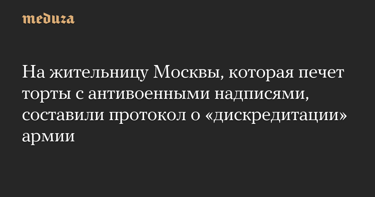 На жительницу Москвы, которая печет торты с антивоенными надписями, составили протокол о «дискредитации» армии