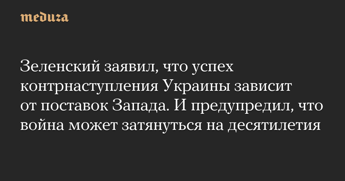 Зеленский заявил, что успех контрнаступления Украины зависит от поставок Запада. И предупредил, что война может затянуться на десятилетия