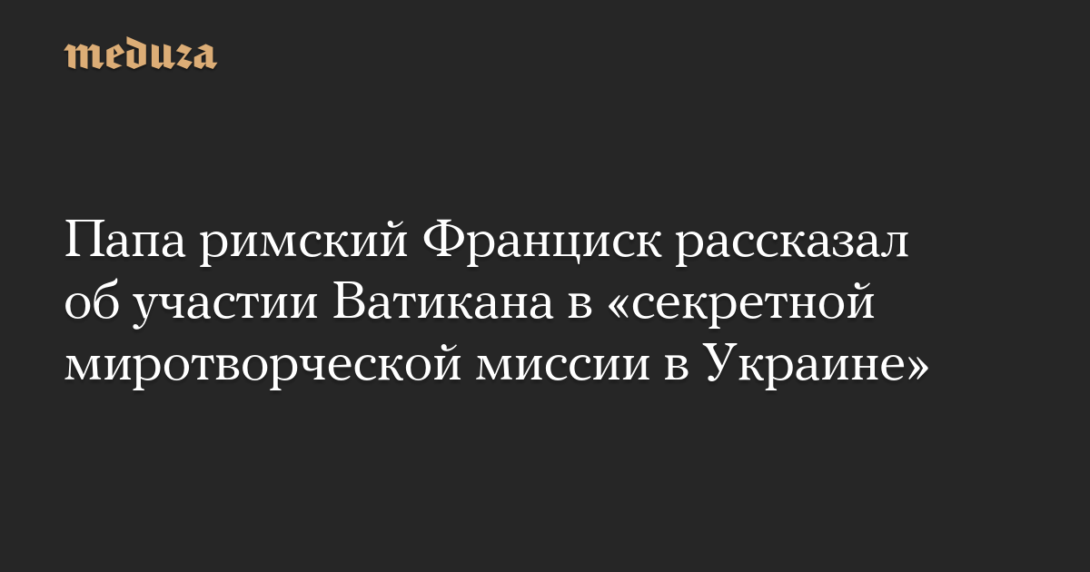 Папа римский Франциск рассказал об участии Ватикана в «секретной миротворческой миссии в Украине»