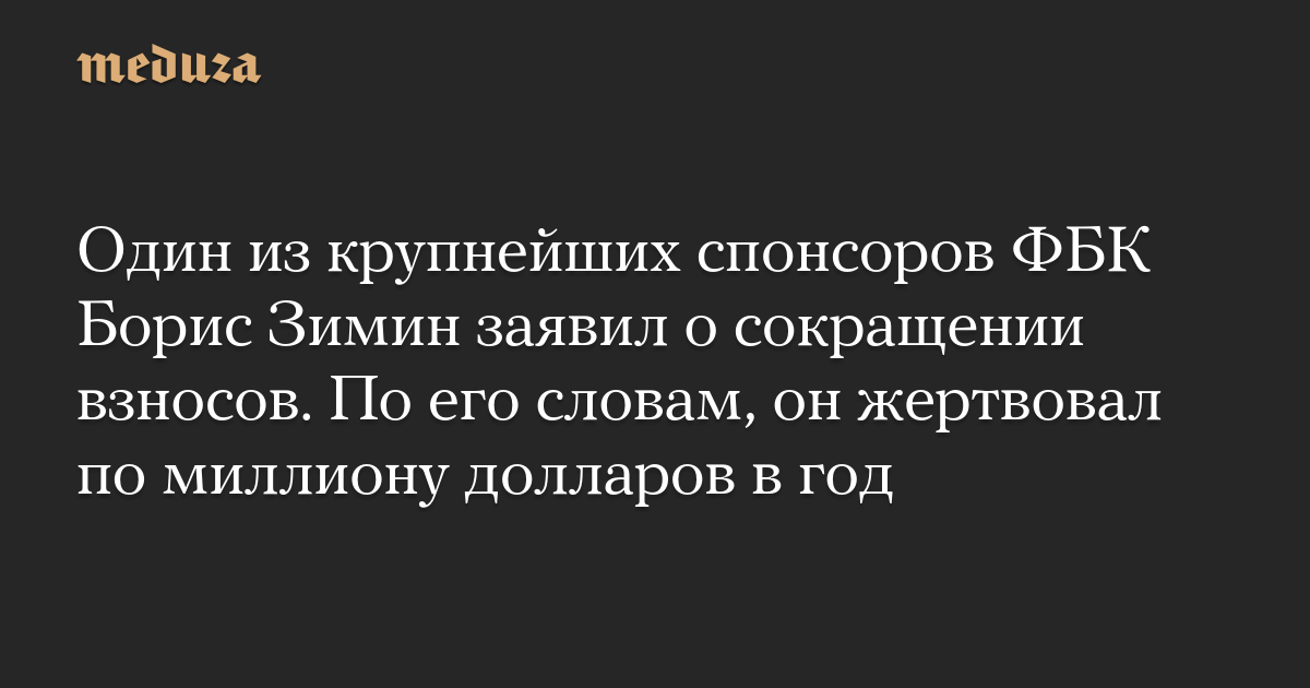 Один из крупнейших спонсоров ФБК Борис Зимин заявил о сокращении взносов. По его словам, он жертвовал по миллиону долларов в год