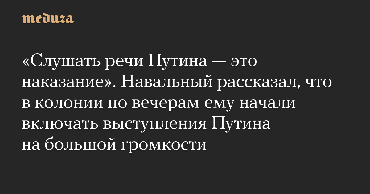 «Слушать речи Путина — это наказание». Навальный рассказал, что в колонии по вечерам ему начали включать выступления Путина на большой громкости