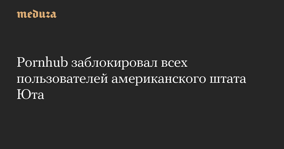 Крупнейший сайт с контентом для взрослых Pornhub ограничил доступ к своей платформе для всех пользователей из американского штата Юта, сообщает The Wall Street Journal.