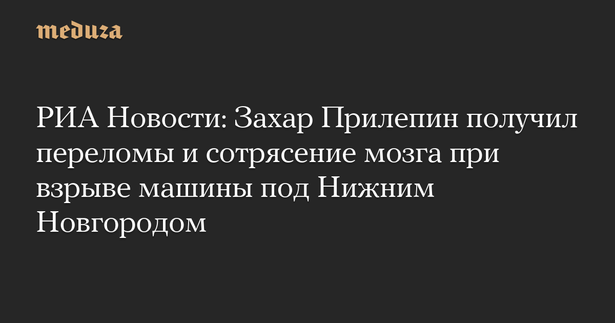 РИА Новости: Захар Прилепин получил переломы и сотрясение мозга при взрыве машины под Нижним Новгородом