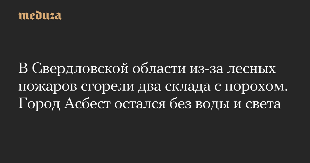 В Свердловской области из-за лесных пожаров сгорели два склада с порохом. Город Асбест остался без воды и света