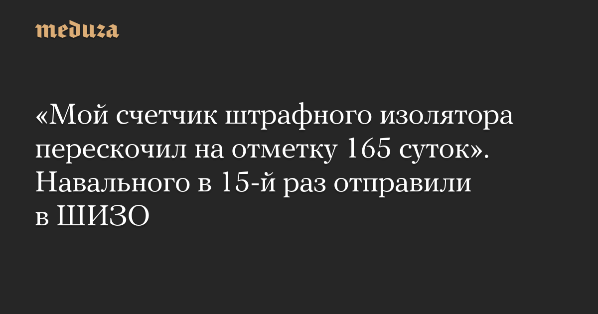 «Мой счетчик штрафного изолятора перескочил на отметку 165 суток». Навального в 15-й раз отправили в ШИЗО