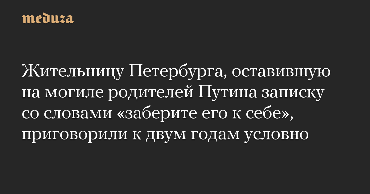Жительницу Петербурга, оставившую на могиле родителей Путина записку со словами «заберите его к себе», приговорили к двум годам условно