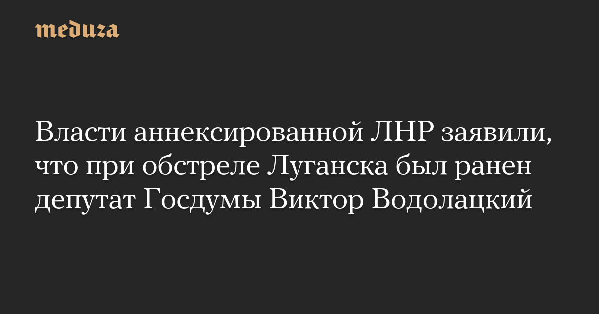 В Луганске во время обстрела ранения получил депутат Госдумы от фракции «Единая Россия» Виктор Водолацкий, сообщает «Интерфакс» со ссылкой на заявление представителей аннексированной ЛНР.