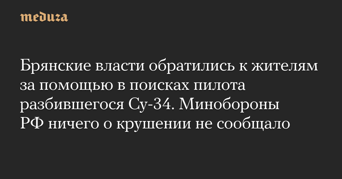 Брянские власти обратились к жителям за помощью в поисках пилота разбившегося Су-34. Минобороны РФ ничего о крушении не сообщало