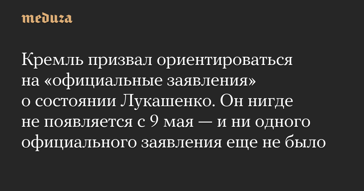 Кремль призвал ориентироваться на «официальные заявления» о состоянии Лукашенко. Он нигде не появляется с 9 мая — и ни одного официального заявления еще не было