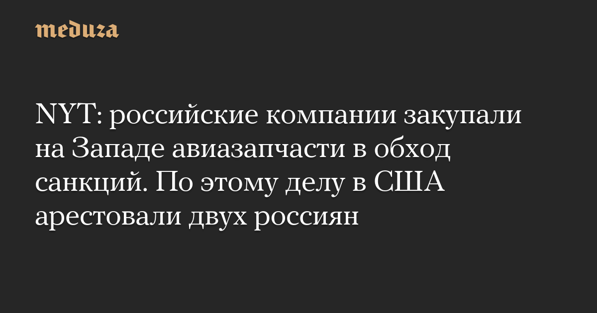 NYT: российские компании закупали на Западе авиазапчасти в обход санкций. По этому делу в США арестовали двух россиян