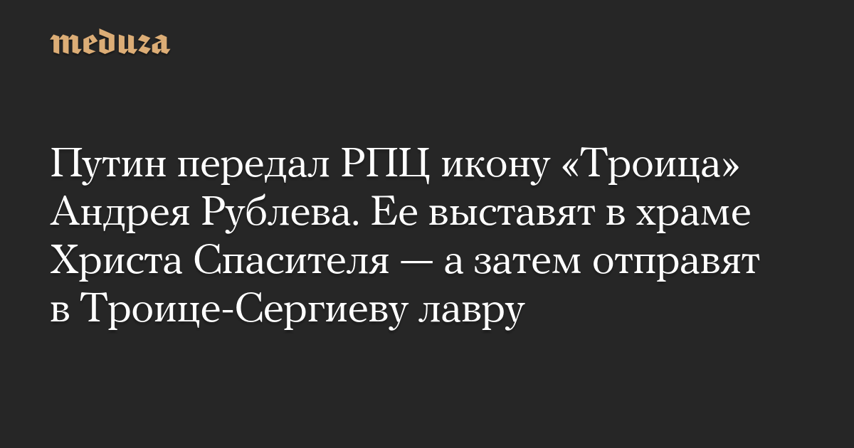 Путин передал РПЦ икону «Троица» Андрея Рублева. Ее выставят в храме Христа Спасителя — а затем отправят в Троице-Сергиеву лавру