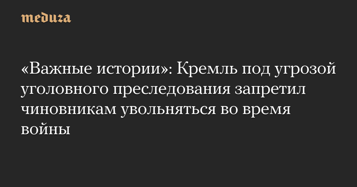 «Важные истории»: Кремль под угрозой уголовного преследования запретил чиновникам увольняться во время войны