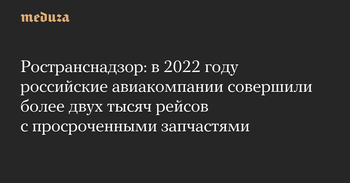 В 2022 году в России из-за западных санкций более двух тысяч авиарейсов были совершены на самолетах, укомплектованных запчастями с истекшим сроком годности. Об этом на заседании комитета Госдумы по транспорту 16 мая заявил глава Ространснадзора (федеральная служба, подчиняющаяся министерству транспорта РФ) Виктор Басаргин. Запись его выступления оказалась в распоряжении «Коммерсанта».