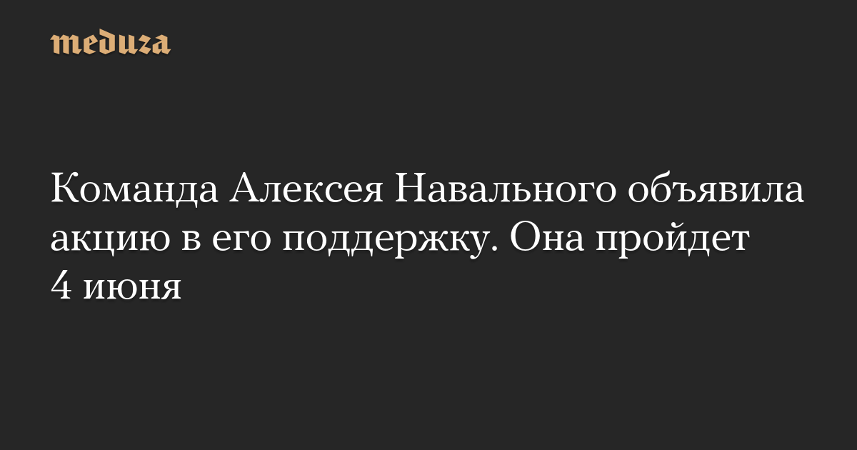 Команда Алексея Навального объявила акцию в его поддержку. Она пройдет 4 июня