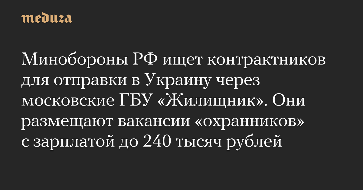 Минобороны РФ ищет контрактников для отправки в Украину через московские ГБУ «Жилищник». Они размещают вакансии «охранников» с зарплатой до 240 тысяч рублей