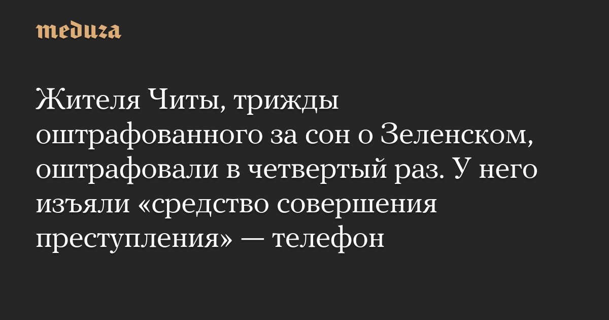 Жителя Читы, трижды оштрафованного за сон о Зеленском, оштрафовали в четвертый раз. У него изъяли «средство совершения преступления» — телефон