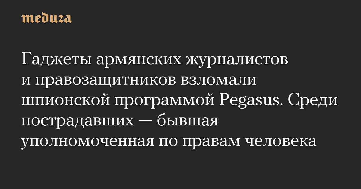 Гаджеты армянских журналистов и правозащитников взломали шпионской программой Pegasus. Среди пострадавших — бывшая уполномоченная по правам человека