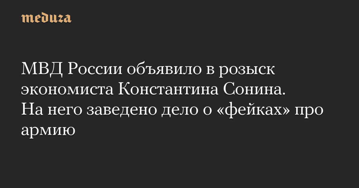 МВД России объявило в розыск экономиста Константина Сонина. На него заведено дело о «фейках» про армию