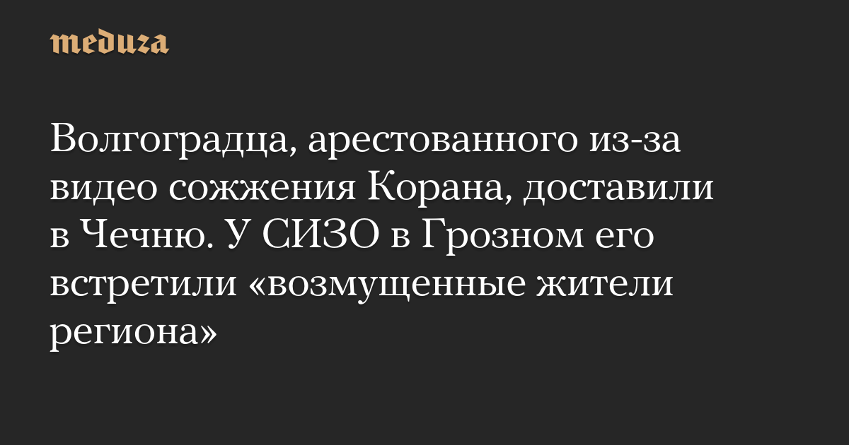 Волгоградца, арестованного из-за видео сожжения Корана, доставили в Чечню. У СИЗО в Грозном его встретили «возмущенные жители региона»