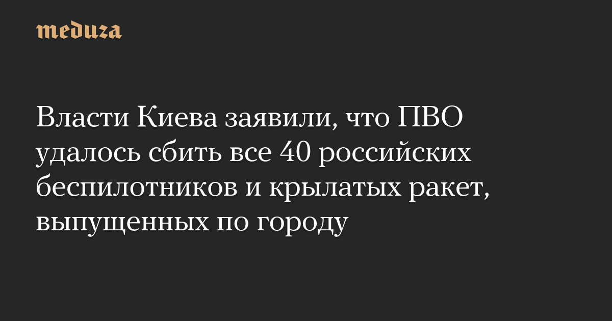 Власти Киева заявили, что ПВО удалось сбить все 40 российских беспилотников и крылатых ракет, выпущенных по городу
