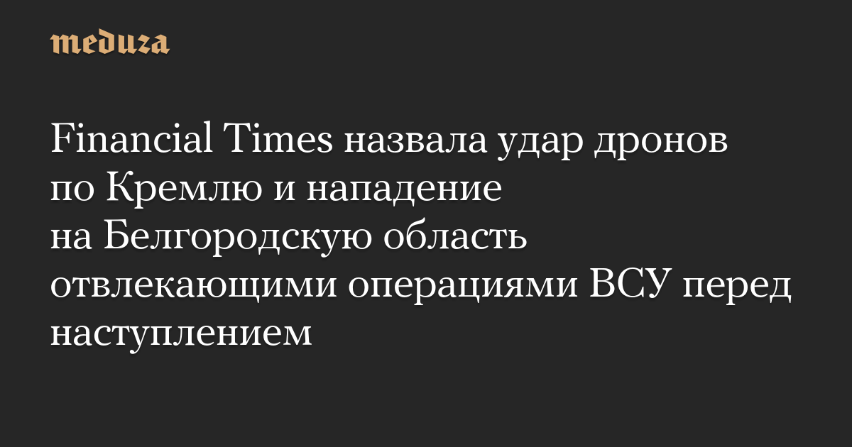 Financial Times назвала удар дронов по Кремлю и нападение на Белгородскую область отвлекающими операциями ВСУ перед наступлением