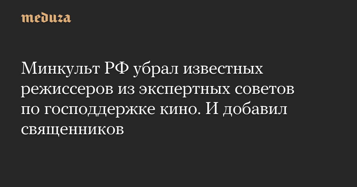 Минкульт РФ убрал известных режиссеров из экспертных советов по господдержке кино. И добавил священников