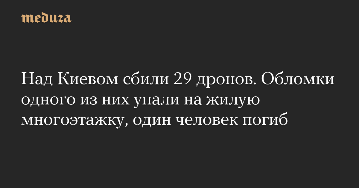 Над Киевом сбили 29 дронов. Обломки одного из них упали на жилую многоэтажку, один человек погиб