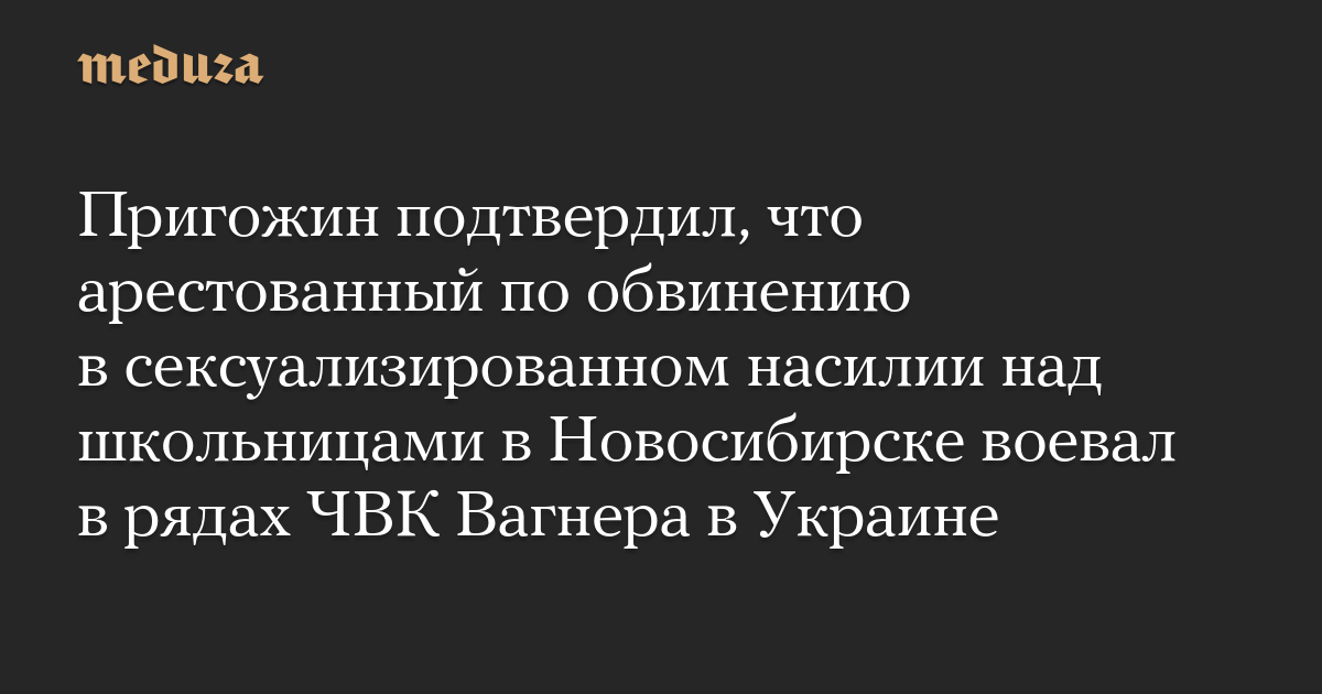 Пригожин подтвердил, что арестованный по обвинению в сексуализированном насилии над школьницами в Новосибирске воевал в рядах ЧВК Вагнера в Украине