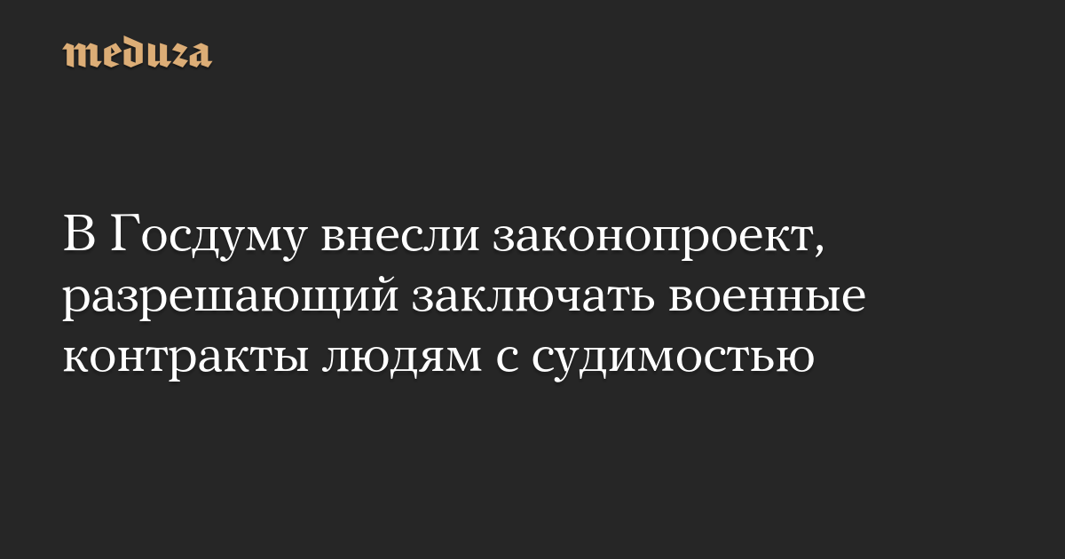 В Госдуму внесен законопроект, позволяющий заключать военные контракты людям с судимостью, а также тем, кто признан ограниченно годным.