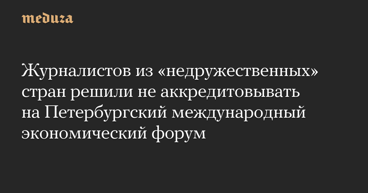 Российские власти решили не аккредитовывать журналистов из «недружественных» стран на Петербургский международный экономический форум, сообщает The Bell.