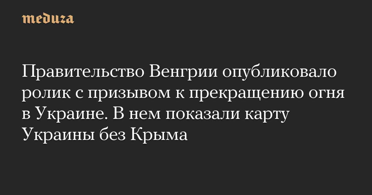 Правительство Венгрии опубликовало ролик с призывом к прекращению огня в Украине. В нем показали карту Украины без Крыма