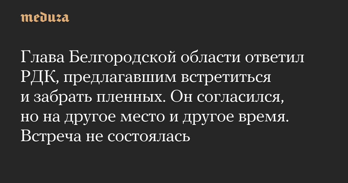 Глава Белгородской области ответил РДК, предлагавшим встретиться и забрать пленных. Он согласился, но на другое место и другое время. Встреча не состоялась