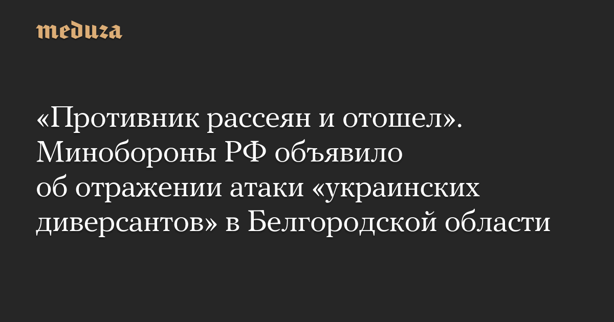 «Противник рассеян и отошел». Минобороны РФ объявило об отражении атаки «украинских диверсантов» в Белгородской области
