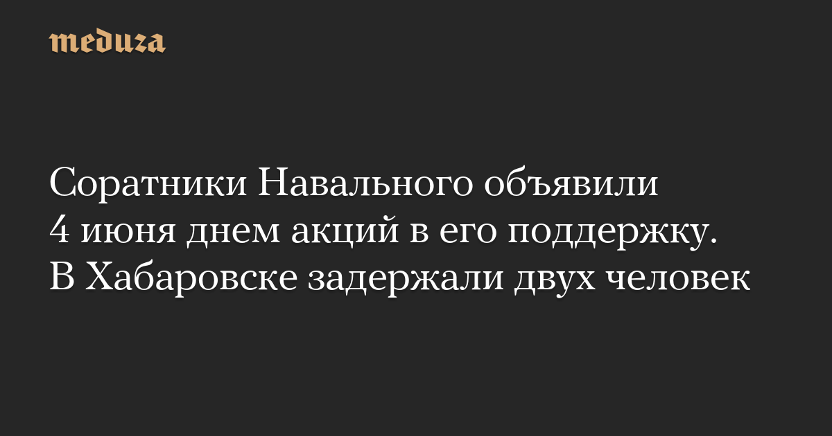 Соратники Навального объявили 4 июня днем акций в его поддержку. В Хабаровске задержали двух человек