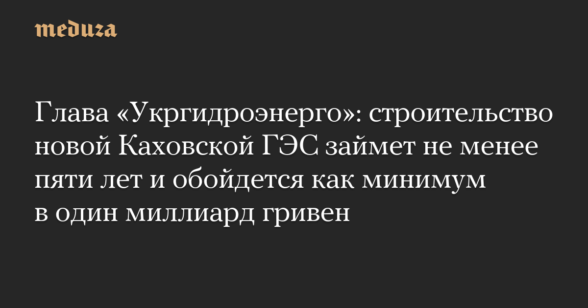 Глава «Укргидроэнерго»: строительство новой Каховской ГЭС займет не менее пяти лет и обойдется как минимум в один миллиард гривен