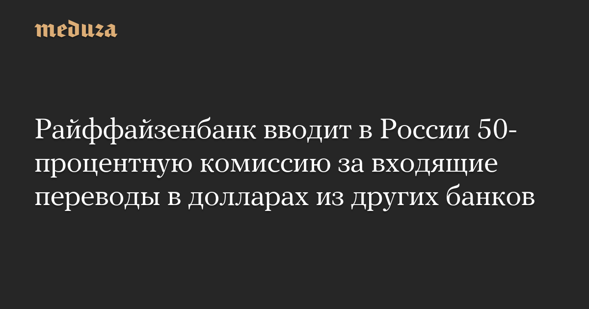 Райффайзенбанк вводит в России 50-процентную комиссию за входящие переводы в долларах из других банков