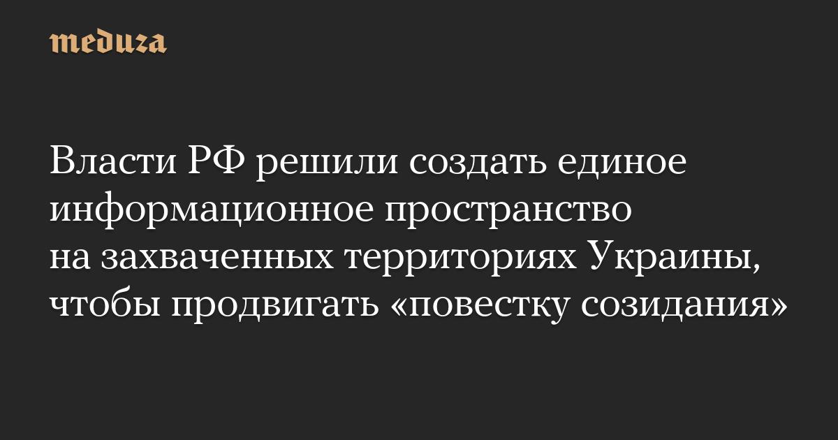 Власти РФ решили создать единое информационное пространство на захваченных территориях Украины, чтобы продвигать «повестку созидания»