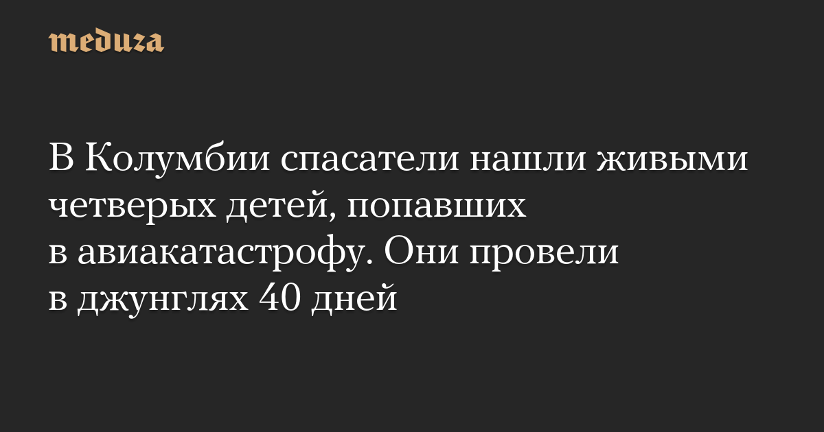 В джунглях Колумбии спасатели обнаружили живыми четверых детей, которые провели там 40 дней после крушения самолета.