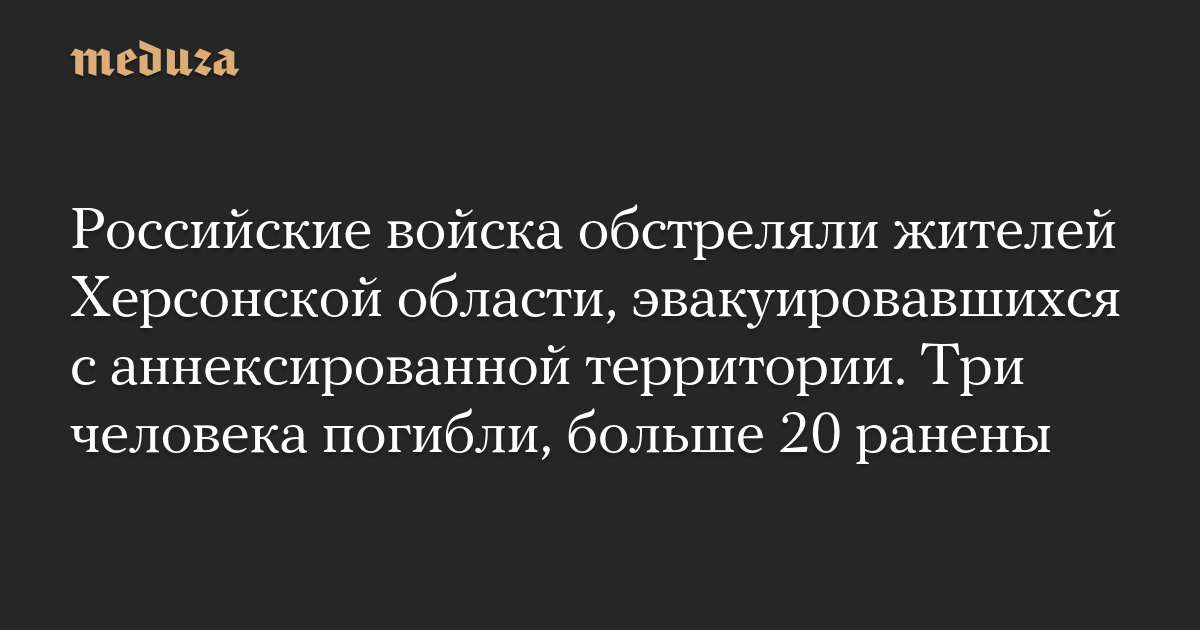 Российские войска обстреляли жителей Херсонской области, эвакуировавшихся с аннексированной территории. Три человека погибли, больше 20 ранены