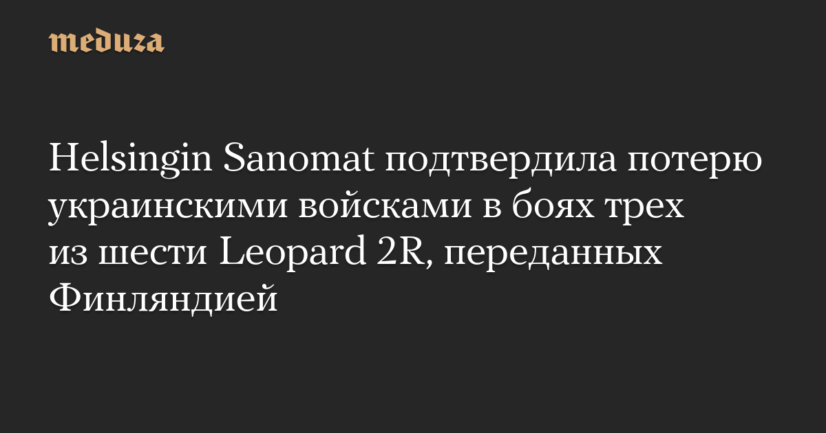В ходе контрнаступления ВСУ потеряли как минимум три Leopard 2R, переданные им Финляндией, пишет издание Helsingin Sanomat.