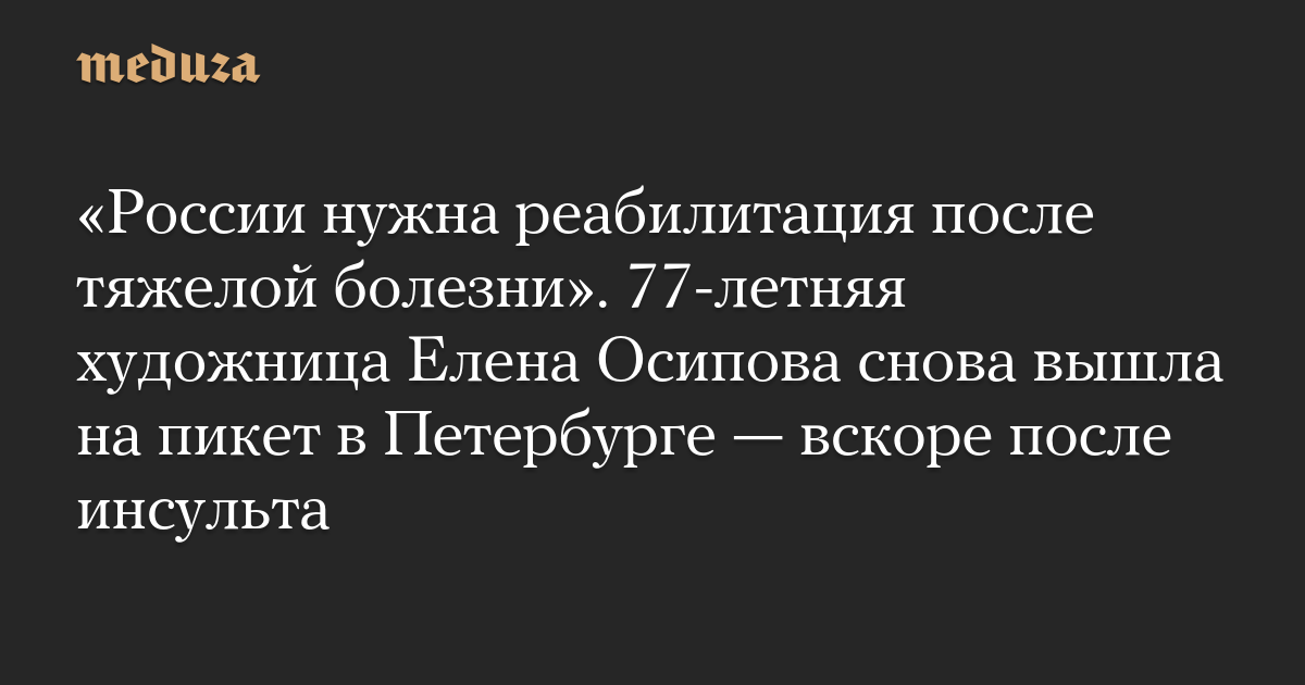 77-летняя Осипова вышла с баннером с надписью «России нужна реабилитация после тяжелой болезни». Как уточняет MR7, художницу не задерживали.