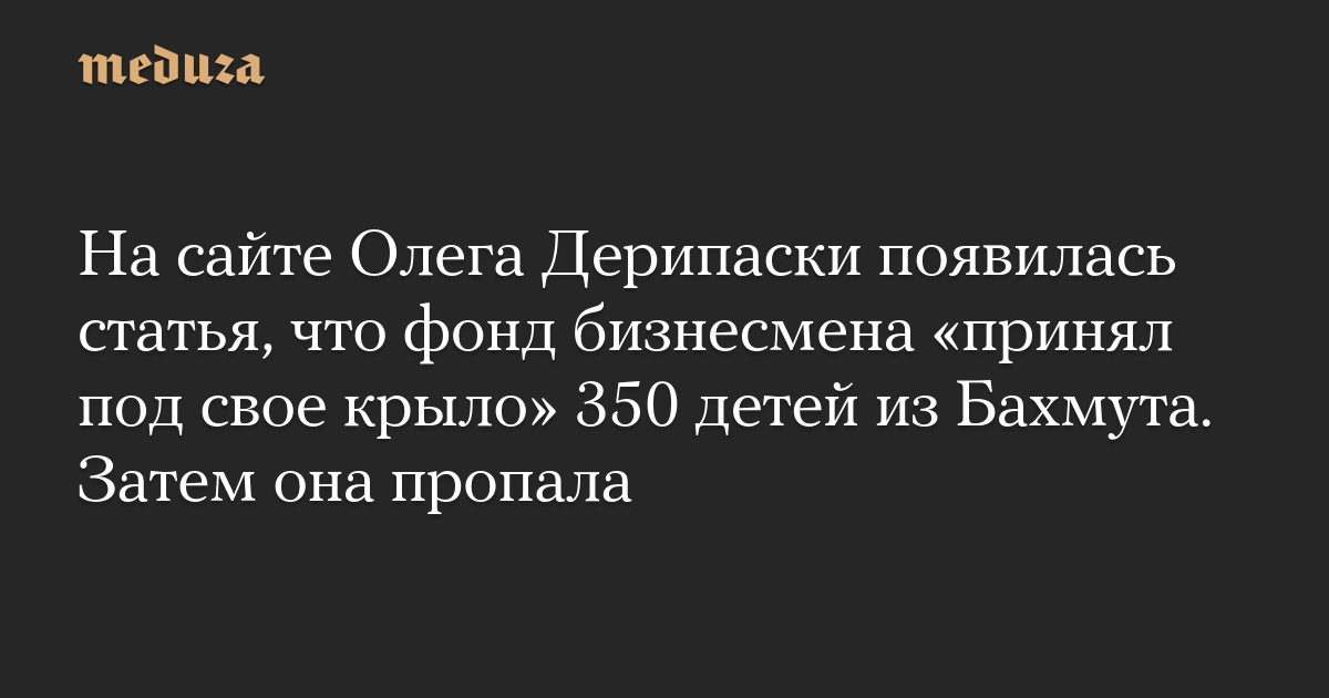 На сайте Олега Дерипаски появилась статья, что фонд бизнесмена «принял под свое крыло» 350 детей из Бахмута. Затем она пропала