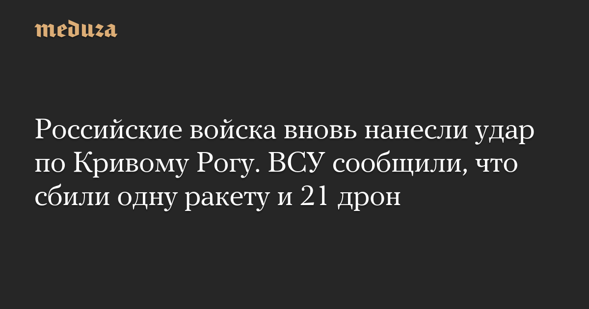 Российские войска вновь нанесли удар по Кривому Рогу. ВСУ сообщили, что сбили одну ракету и 21 дрон