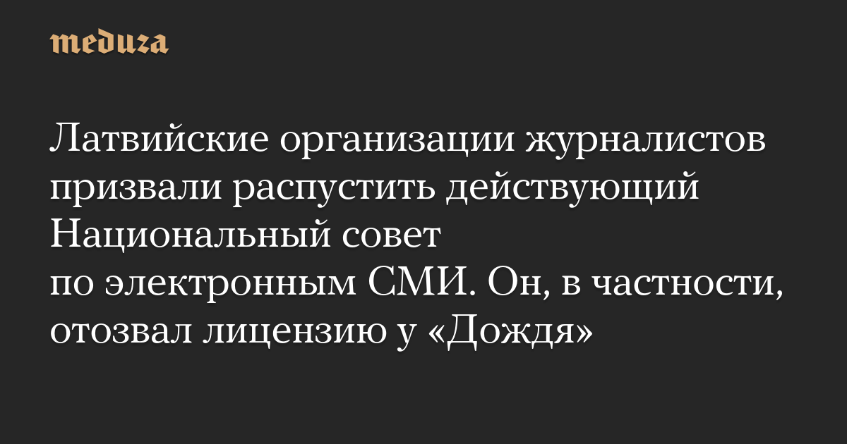 Латвийские организации журналистов призвали распустить действующий Национальный совет по электронным СМИ. Он, в частности, отозвал лицензию у «Дождя»