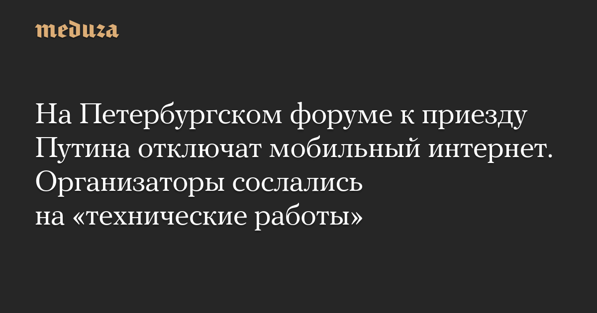 На Петербургском форуме к приезду Путина отключат мобильный интернет. Организаторы сослались на «технические работы»