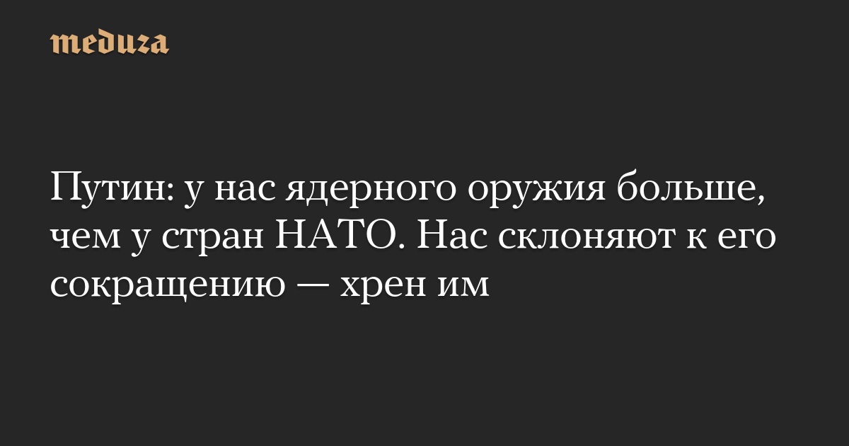 Путин: у нас ядерного оружия больше, чем у стран НАТО. Нас склоняют к его сокращению — хрен им